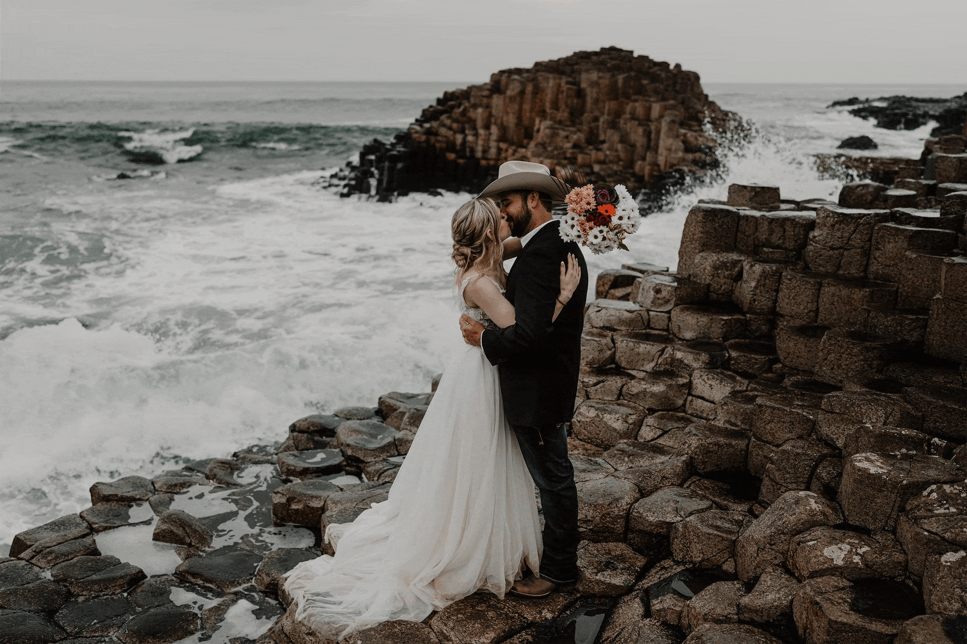 The couples who choose autumn aren’t usually trying to avoid something. They’re choosing something. The particular quality of an October afternoon on the North Antrim coast, the way the light moves across the ruins, the sound of the sea picking up, the landscape turning on its axis from one season to the next. That’s not a compromise version of a Causeway Coast elopement. It’s the finest version.